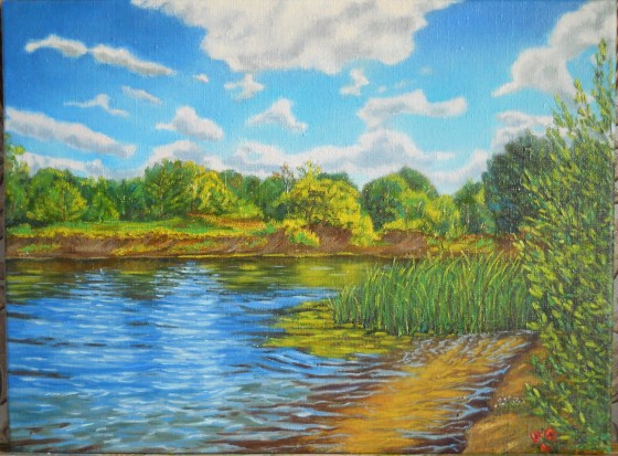 Холст лён на подрамнике, торцы окрашены, в рамку не оформлена