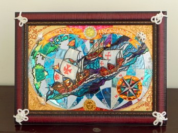 Размер живописного поля: 220х160 (мм) (габариты с рамой 280х210 мм). Вольная фантазия по мотивам правдивых историй Мюнхаузена:) Сказочный грациозный олень получает подарок от своего друга Птицы. Картина выполнена импортными витражными красками и контурами по стеклу и украшена к месту яркими объёмными элементами. Романтикам и влюблённым этот витраж будет оригинальным памятным подарком! Мои картины обрели счастливых хозяев не только в разных городах Украины и СНГ,но и в США и Германии. Присоединяйтесь! (Доставка : =Новая почта= или самовывоз