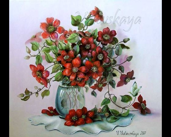 Наверное, клематис - одно из самых изящных и красивых вьющихся растений, которое можно встретить во многих уголках мира - в лесах, на каменистых холмах и по берегам водоёмов. Его гибкие лозы украшают ограды и арки, взбираются на отвесные стены густыми цветущими коврами, радуя глаз крупными, яркими и в то же время такими изысканными цветками, мягко покачивающими своими головками под лучами тёплого солнца. Они неудержимо влекут к себе бабочек, ос и пчёл, источая сладостные ароматы, напоминающие запах миндаля, жасмина или липы, в зависимости от разновидности клематисов. Англичане очень любят эти пышные растения, постепенно обвивающие их дома со всех сторон и цветущими водопадами ниспадающие с крыш. Они ласково называют их "девичьи волосы", а иногда - "радость путника". А как приятно отдыхать жарким полуднем в тенистой беседке, накрытой цветущим покрывалом клематисов, и слушать мелодичные споры беззаботных пичуг. Кстати, и в квартире букет клематисов смотрится тоже замечательно. Если поставить в стеклянную вазу с водой свежесрезанные веточки с распустившимися цветками багряного окраса, то будет казаться, что они дышат теплом щедрого лета и мягким ароматом лирических мечтаний. И пусть не долго продлится это волшебное очарование - к сожалению, всему положен свой срок, но пока цветки клематиса дарят нам свою красоту, мир прекрасен и жизнь полна чувственного очарования...