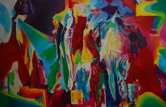 Картина-коллаж из обрывков дефиле показанных по Fashion TV в начале 2000-ных. Направленный свет,неон,стройные девушки...