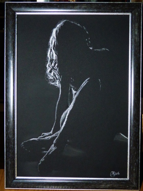 Авторская картина"Взгляд"-белая сухая пастель,рама со стеклом.Описание картины в стихах от автора.