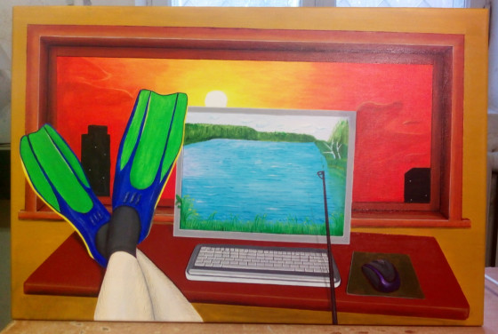 Произведение выполнено акриловыми красками на холсте. Можно вешать на стену без рамы.