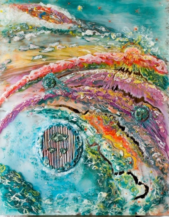 Картина написана в технике ЭНКАУСТИКА.Материалы:воск.утвердители,стекло, акрил.гель,лак.Работа с секретом :при рассмотрении картины под углом 12-17 градусов можно увидеть секрет.