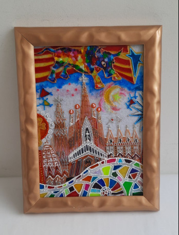 Размер живописного поля 180 х 180 (мм). Ода психоделическому величию Духа и Вселенной! Открытие Мира в себе. И просто красивая яркая картинка - отличный подарок Знатокам! Фоном картины служит культовая "джинса" - деним. Витражная картина выполнена витражными и акриловыми качественными импортными красками и палитрой разных контуров по стеклу. Панно украшено декоративными элементами и символами.Стильная "тёмно-золотистая" рамка габаритами 23х23 cм. подвешена по диагонали. Мои картины обрели счастливых хозяев не только в разных городах Украины и СНГ,но и в США и Германии. Присоединяйтесь! Оплата на карту Приватбанка. Доставка- Новая почта .