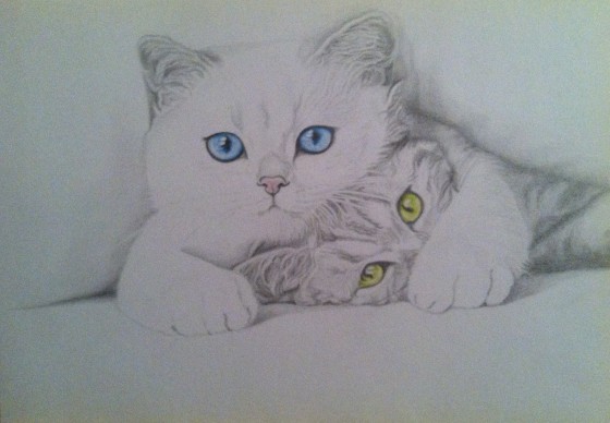 Влюблённые котики. Выполнен графитным и цветными карандашами. Отправка Новой почтой.