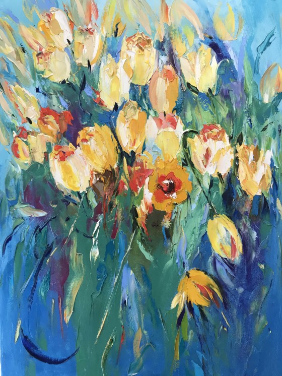 Авторская работа, эмоциональная живопись. Для кого-то это просто желтые тюльпаны, а для